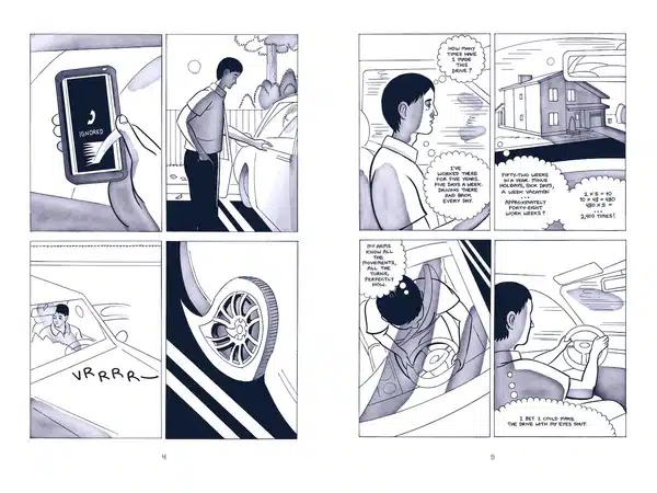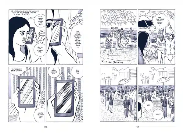 I found this to be a very bold story-telling technique for a graphic novel, a smart risk undertaken by the creator who was likely trying to connect the way his story was told to its themes. It’s also a credit to Shaw’s cartooning and storytelling that I never felt disoriented moving between characters. No, in fact it had a couple interesting effects on me. The first was about the pacing. Perhaps it was the way the pages are laid out, designed to pull you through them quickly, but every time we switched to a new character, I found myself excited to soon learn what that person was concerned about, rather than disoriented by a new focus.
