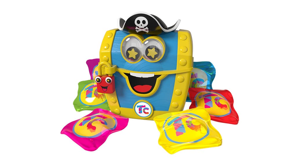 This treasure chest will delight kids with 24 surprises, including Gold Coins, a plush parrot, foam swords, and more.