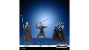 The second is the Vintage Collection’s Anakin Skywalker 3-pack, which costs $49.99. The pack represents Anakin Skywalker’s journey and includes 3.75-inch action figures of Anakin Skywalker in his natural Jedi form, in his Episode III-inspired Darth Vader form, and in his Episode VI Inspired Darth Vader (Redeemed) form. Each figure comes with a lightsaber and an unlit hilt.