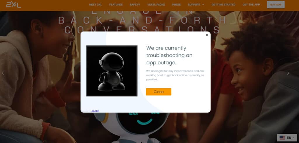 This made me question the status of Mego’s relaunched 2XL, one of the early items from Toy Fair 2023 that was rushed to market last Christmas, followed by a formal launch in March. As of this writing, visitors to the official website for the 2XL Cobot (companion robot), aka the My2XL | AI Robot for Kids, are greeted with the following: