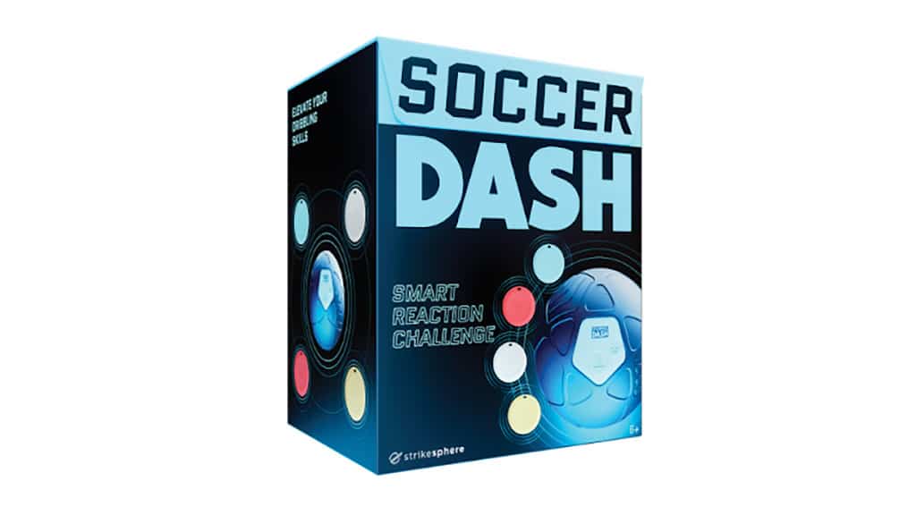 This soccer training device utilizes AI, a smart ball, and four responsive targets that react to and challenge players during six different game modes.