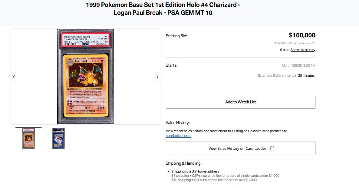 The rare Pokémon card that controversial YouTuber and pro wrestling Logan Paul wore into the ring on several occasions, is going up for auction – although the card has been dogged by controversy over its actual condition and ownership.