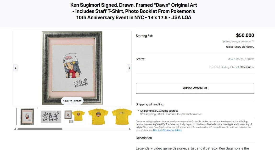 - Ken Sugimori’s signed and framed “Dawn” original artwork