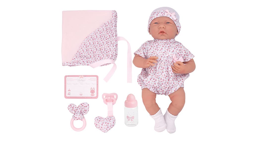 This 15-inch doll features lifelike wrinkles, a poseable soft body, and accessories like a bottle, pacifier, blanket, and birth certificate — perfect for nurturing play and imaginative caregivers.