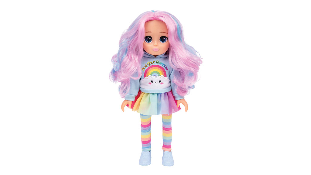 This 14-inch doll features rainbow hair, embroidered fashion, and a soft body. It also includes mindfulness accessories like a journal, bracelet, and confidence cards to support emotional well-being through purposeful play.