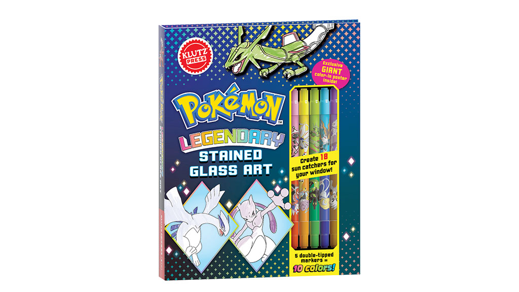Create 18 stained-glass-style window clings featuring Legendary Pokémon using special vellum pages and 10 double-tipped markers. Includes bonus poster, coloring pages, and facts about Pokémon like Lugia, Rayquaza, and Miraidon.