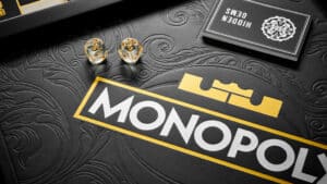 While the Monopoly game has all the classic rules and gameplay, other components differ from the LeBron theme. Instead of the classic railroads, the locations on the board represent James’ four NBA Championships. The tokens include James’ Nike shoe, jersey, Nike basketball with James’ logo, a lion, and a crown. His latest signature shoe, the LeBron XXII, is represented with a blue-plated token.