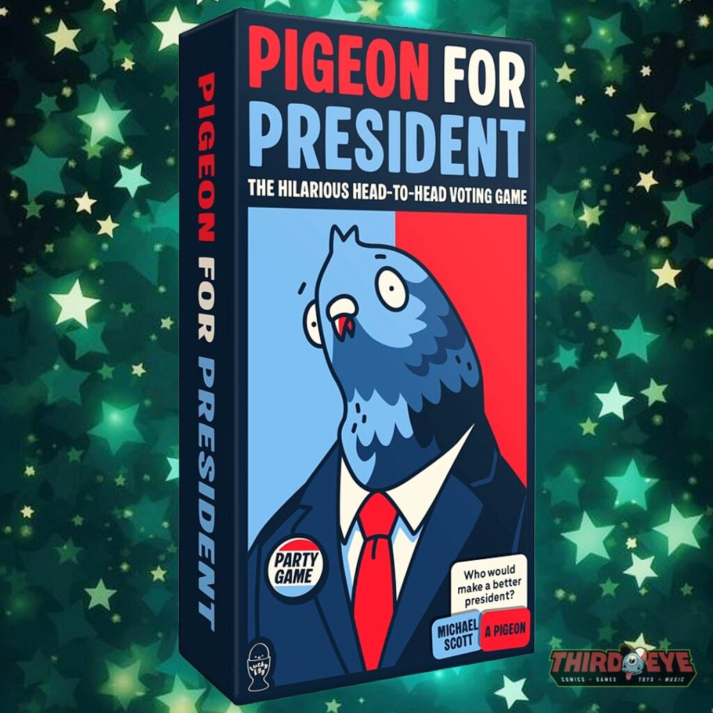 Pigeon for President is a party game built on outrageous questions, absurd characters, and chaotic arguing!! Each round pits unlikely contenders against bizarre scenarios as players debate, vote, and laugh their way to a single winner! Easy to learn, impossible to predict, and packed with replay value, it’s a guaranteed hit for any group that loves humor, debate, and a little friendly chaos!!