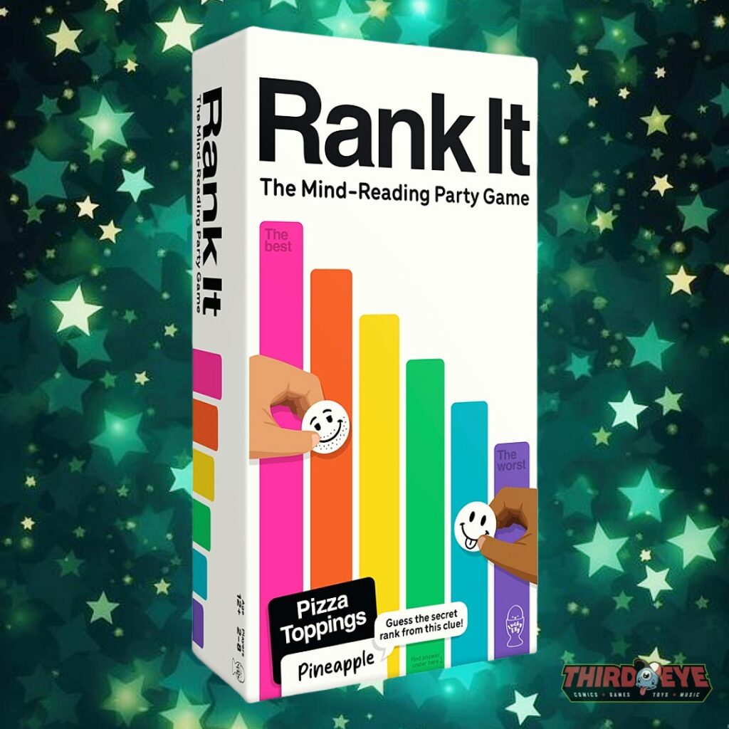 Rank It turns opinions into a hilarious guessing game for families and friends. From movies and songs to pop culture favorites, one player ranks a category in secret while others decode clues and place their bets! With interactive components, flexible player counts, and over 100 categories, it’s a high-energy party game that keeps everyone engaged from start to finish!!