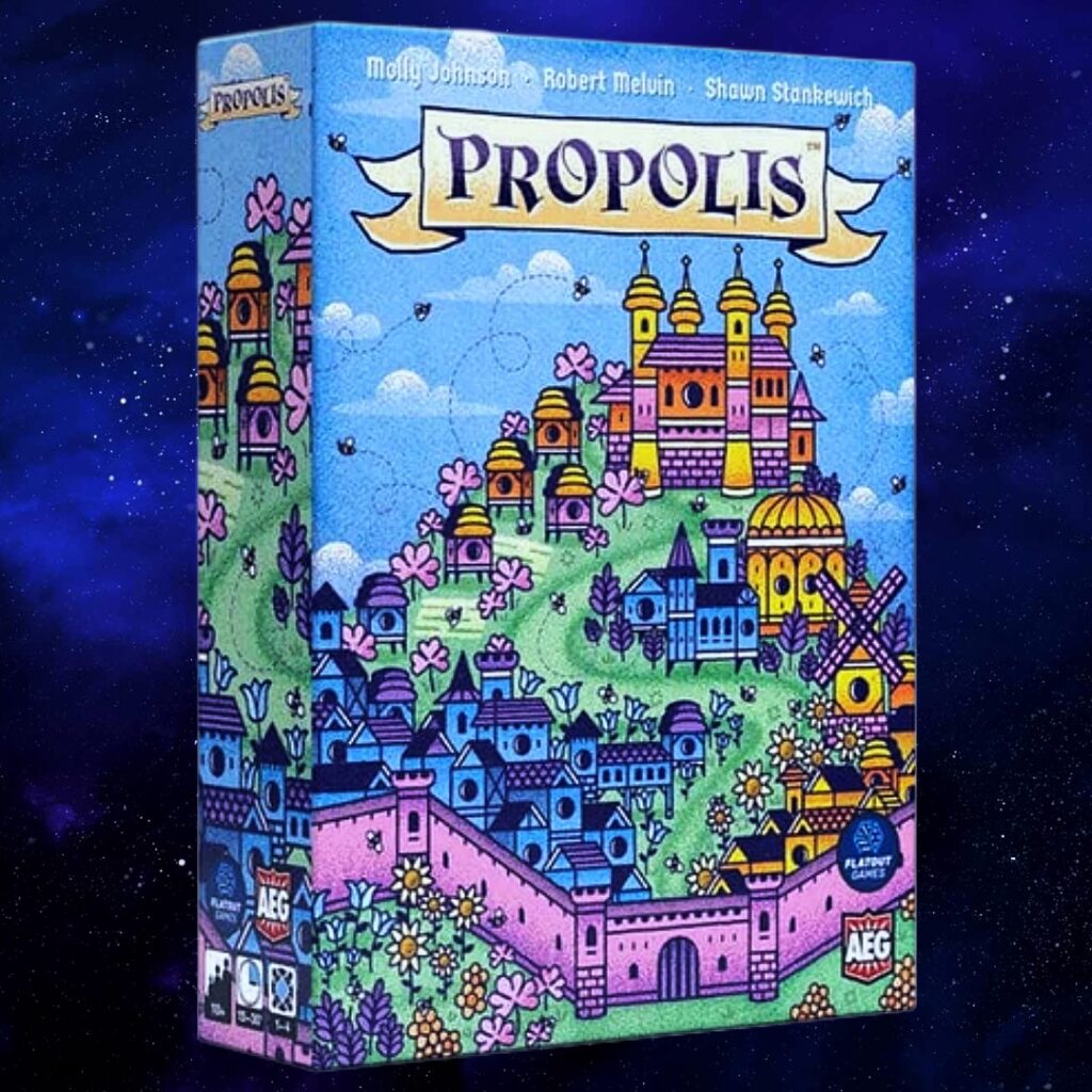 From the award-winning team behind Calico, Cascadia, and Point Salad comes Propolis — a fast, clever worker placement and engine-building game where you’ll lead a medieval bee colony to glory! Deploy your worker bees to gather pollen and propolis, fortify your presence across blooming landscapes, and construct your hive to win the Queen’s favor!!
