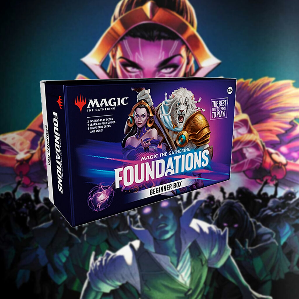 The latest Magic The Gathering set, which is set to be releases this upcoming Friday, is a set unlike no other- “Foundations” offers both new and returning players a chance to dive into the best that the Multiverse has to offer!! The set features iconic Planeswalkers, memorable locations, and legendary creatures from past MTG sets, blending classic Magic with modernized play experiences!! This awesome set caters to new and experienced players by offering a variety of products to chose from that best suit the players needs!!