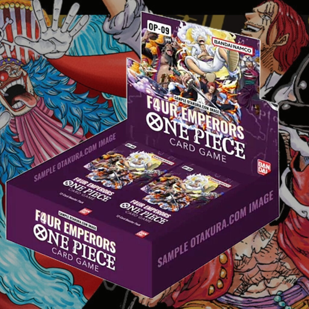 Unleash the might of the greatest powers in One Piece with The Four Emperors Booster Pack (OP-09)! This set features over 130 dynamic cards, introducing iconic characters Buggy, Blackbeard, Shanks, and Luffy as the formidable Four Emperors. Discover leader cards, rare and super rare pulls, plus breathtaking Manga Rare cards—including a golden Manga Rare of Gol D. Roger! New cards inspired by One Piece Odyssey offer fresh strategies to dominate the battlefield. Combine these new cards with your existing decks to forge unstoppable combos. Whether you seek treasure, power, or victory, this set puts the world’s most legendary forces in your hands!!
