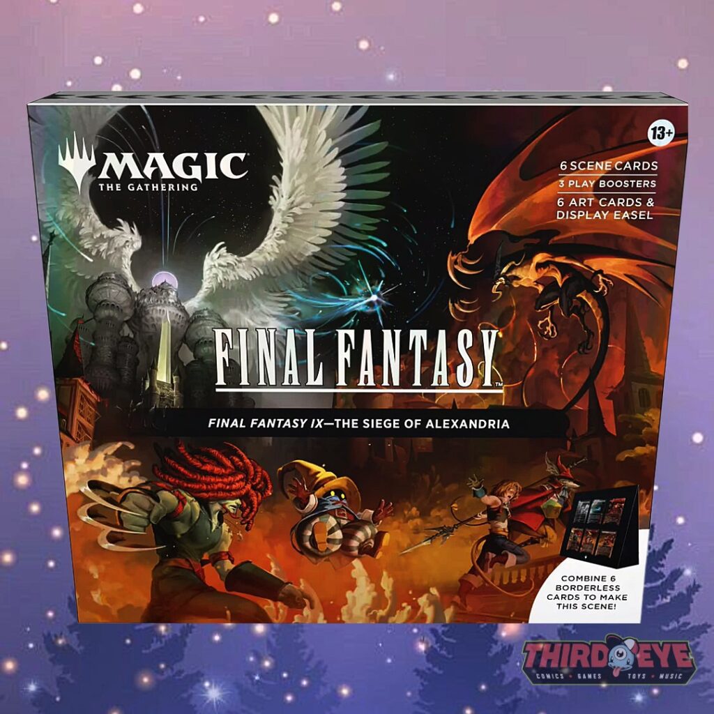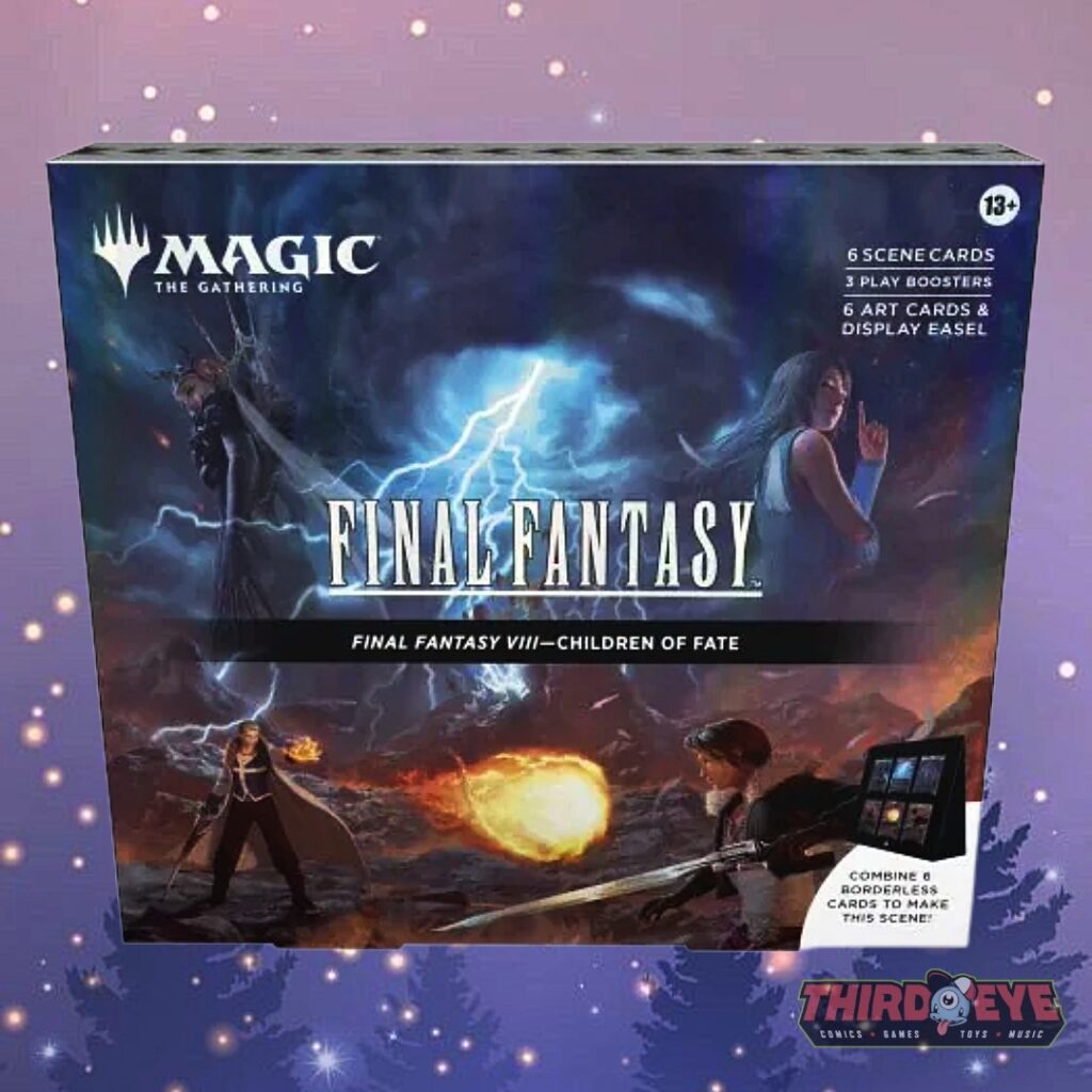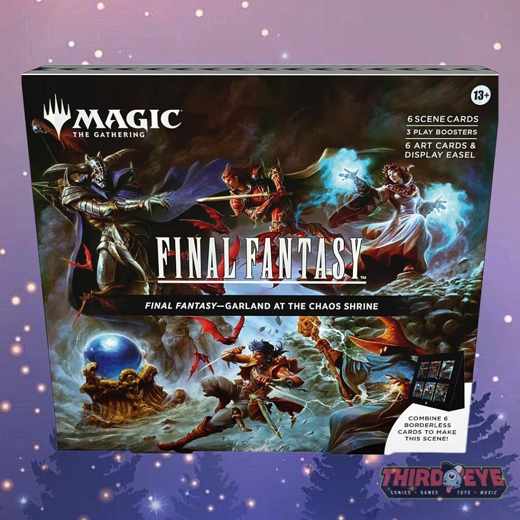 Collect all four Magic: The Gathering—FINAL FANTASY Scene Boxes and bring iconic moments from across the series to life: Garland at the Chaos Shrine, Children of Fate, The Siege of Alexandria, and Camp Comrades. Each Scene Box includes 6 Traditional Foil Borderless Scene Cards that combine to form a panoramic, collectible moment straight from the games, plus 6 Art-Only Scene Cards for pure visual display using the included paper easel. You’ll also get 3 Play Boosters per box—each containing 14 Magic cards with 1–4 Rares, a guaranteed foil card, and a chance at a Traditional Foil Land. Perfect for collectors, FINAL FANTASY fans, and Magic players looking to showcase unforgettable scenes in a whole new way!!
