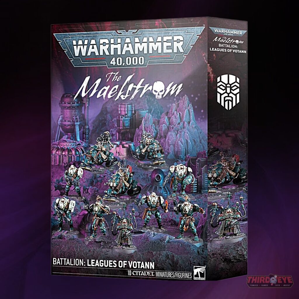 The Leagues of Votann: Maelstrom Battalion is a limited-release strike force for Warhammer 40,000, built for players who want a fast, hard-hitting Kin army straight out of the box. Set against the volatile regions surrounding the Maelstrom, this elite detachment represents a compact force focused on trade, exploration, and ruthless asset recovery!! Inside you’ll find 10 miniatures: 1 Memnyr Strategist to lead your force, 3 Hernkyn Pioneers for high-speed battlefield mobility, and 6 Ironkin Steeljacks forming a durable core of infantry. The Steeljacks can be equipped with heavy volkanite disintegrators or outfitted for close-quarters engagements with plasma swords and bolters, giving you flexible build options!