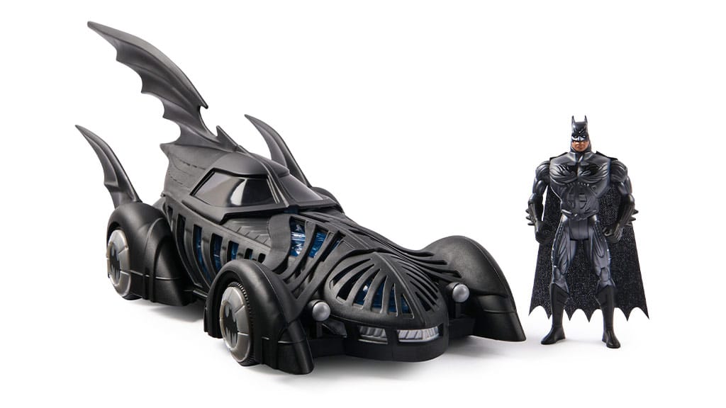 Along with these figures, Spin Master is also unveiling the Batman Forever Retro Batmobile & Batman Collector’s Set. The set includes a 20-inch Batmobile with a translucent chassis to show off the detailed interior. The set comes with an exclusive 5-inch Batman action figure that fits inside the Batmobile and can be displayed inside the vehicle or alongside it.