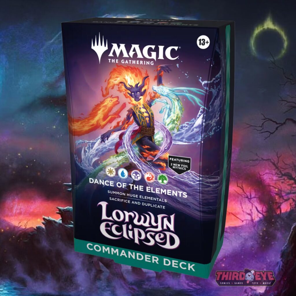 Dance of the Elements harnesses Ashling’s incandescent power, summoning colossal Elementals that crash onto the battlefield with spectacular entry effects. When the time is right, sacrifice your creations and let Ashling copy their might—turning every blaze into a breathtaking display of power.
