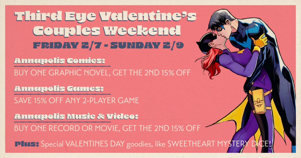 Next up is our all new THIRD EYE VALENTINE’S COUPLES WEEKEND!! We’ve got a full weekend of duo deals at our ANNAPOLIS stores so you can save on the perfect date night activities!