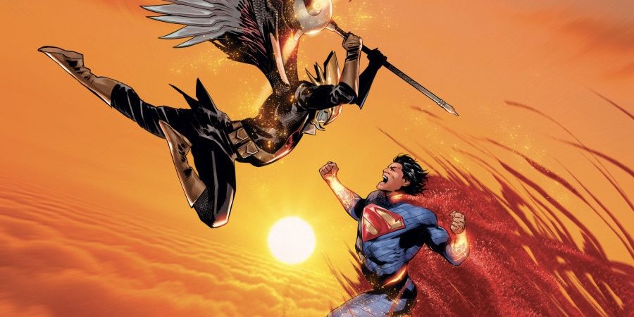 A CRUCIAL FOLLOW-UP TO ABSOLUTE EVIL #1! Superman finds himself at the forefront of a bold new age of heroes in the Absolute Universe, but he quickly learns that he wasn’t the world’s first super-powered protector. Enter Hawkman, who has a few tips for the new kid, whether he wants to hear them or not!